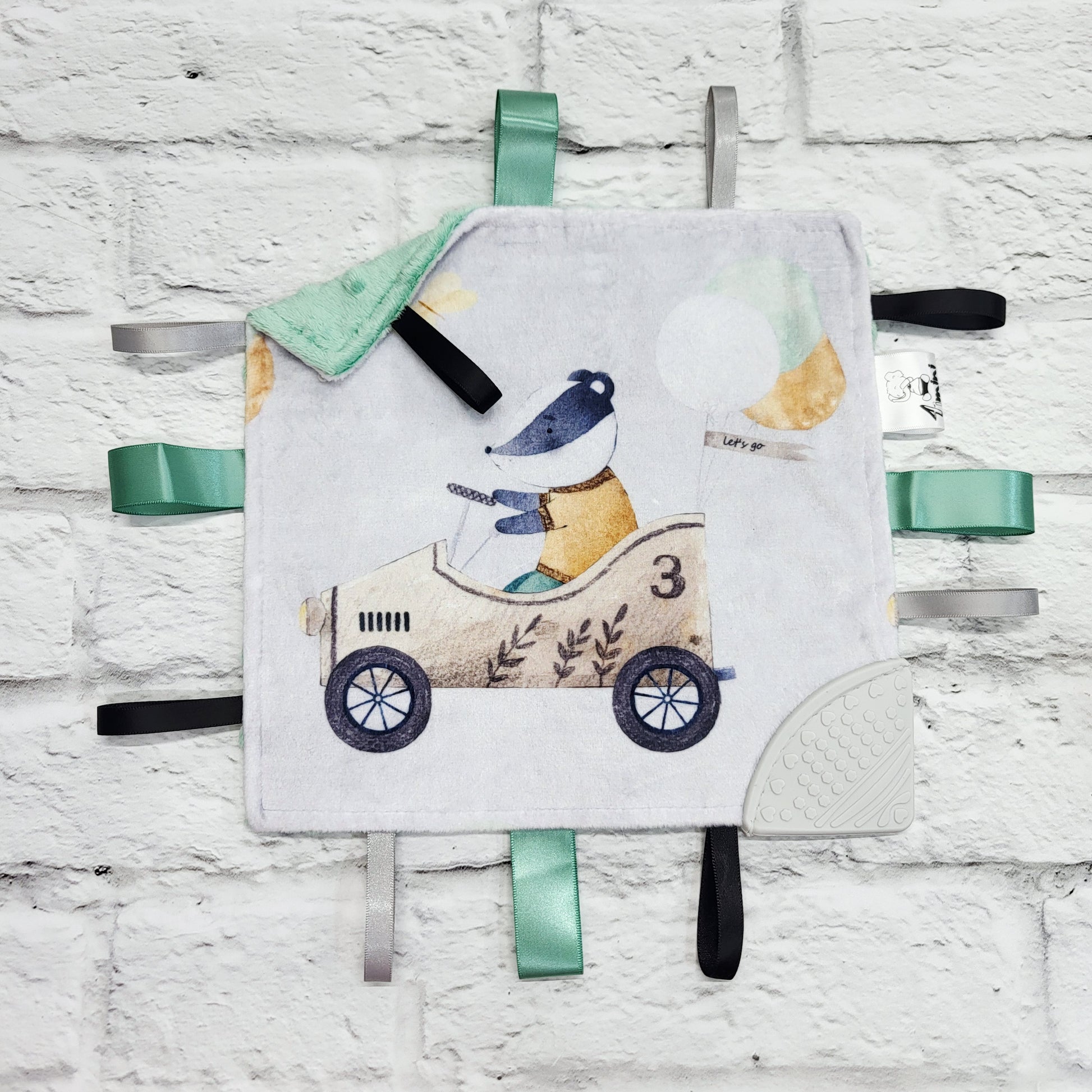 La course aux blaireaux - Doudou étiquettes craquante avec coin de dentition