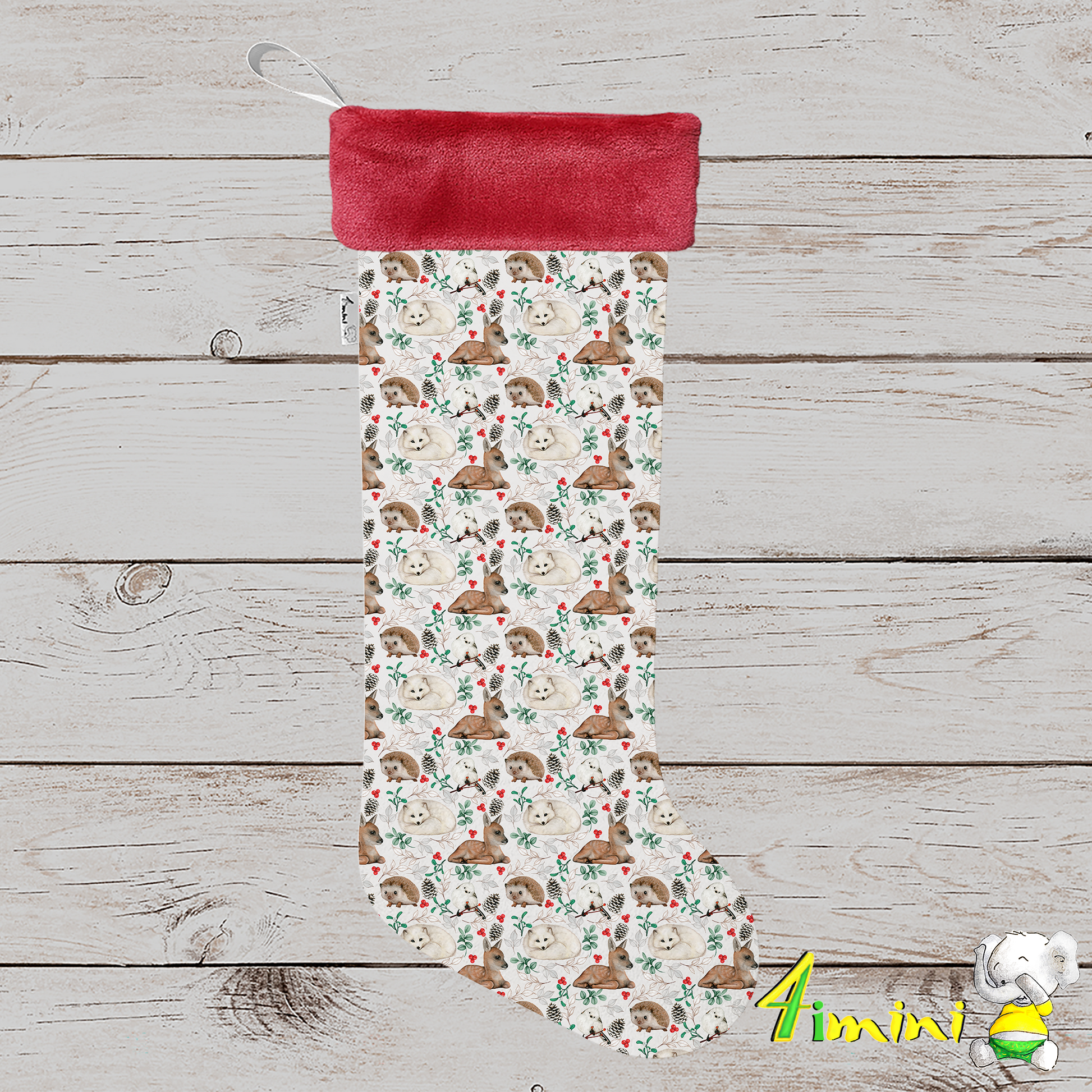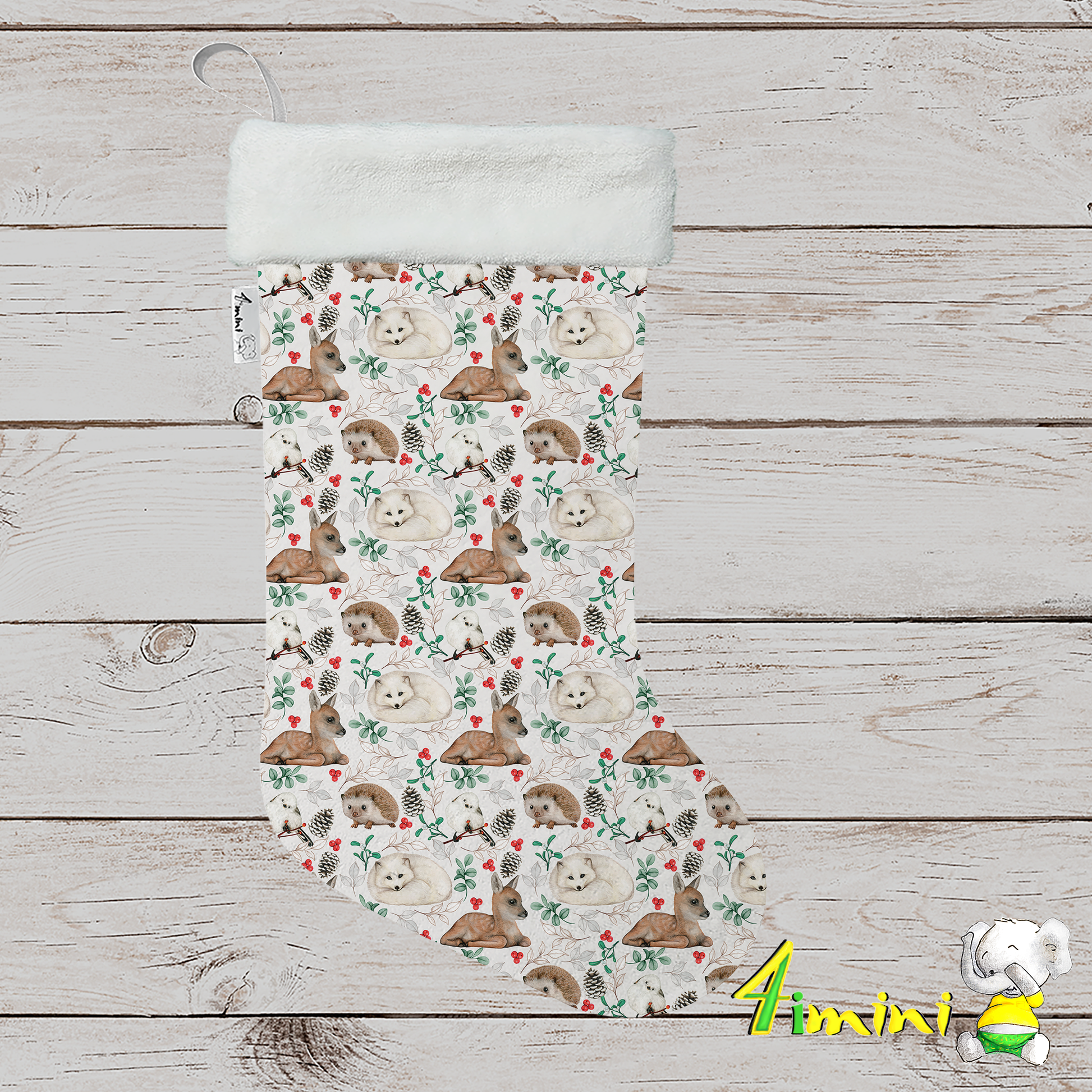 Bas de Noël - Faon et loup des neiges