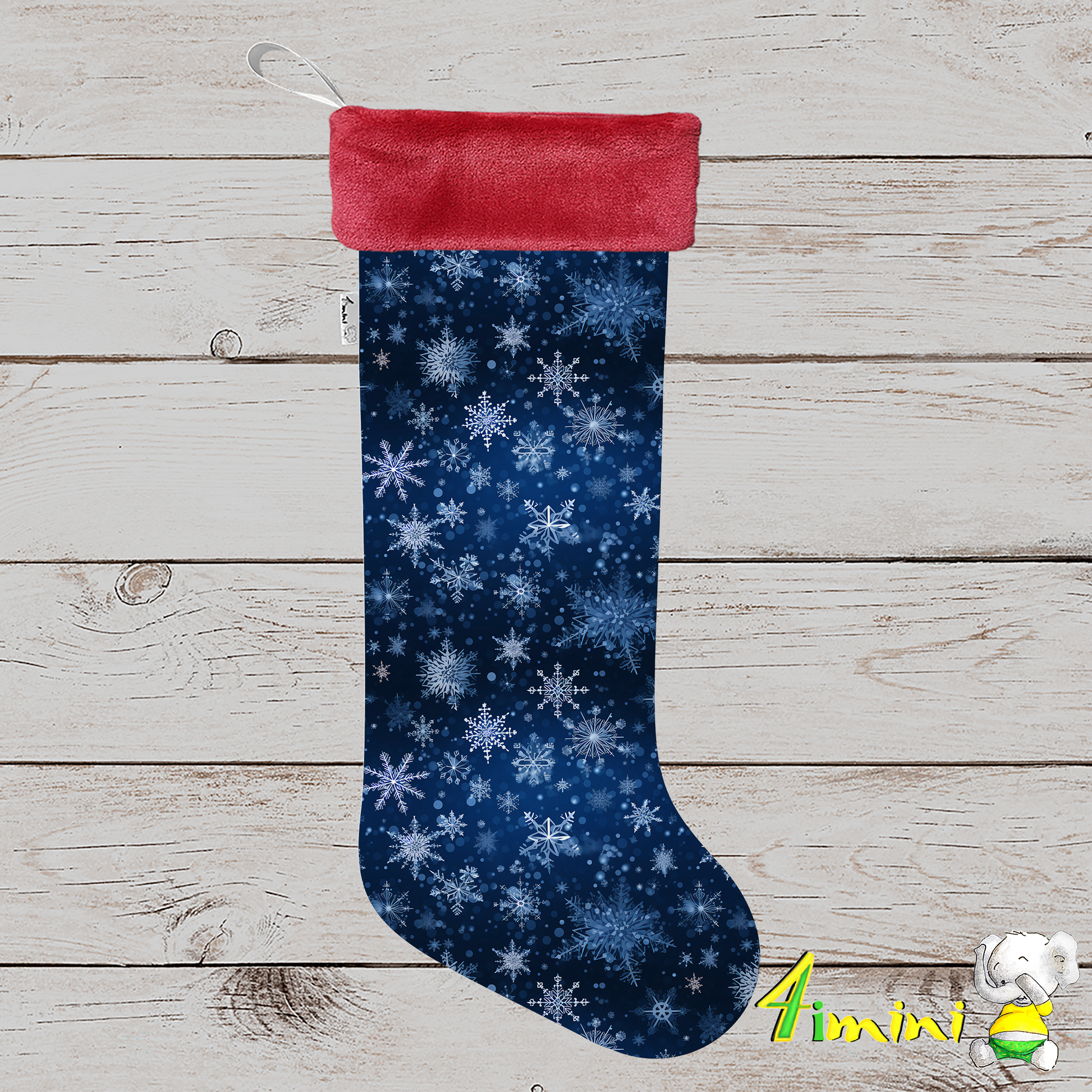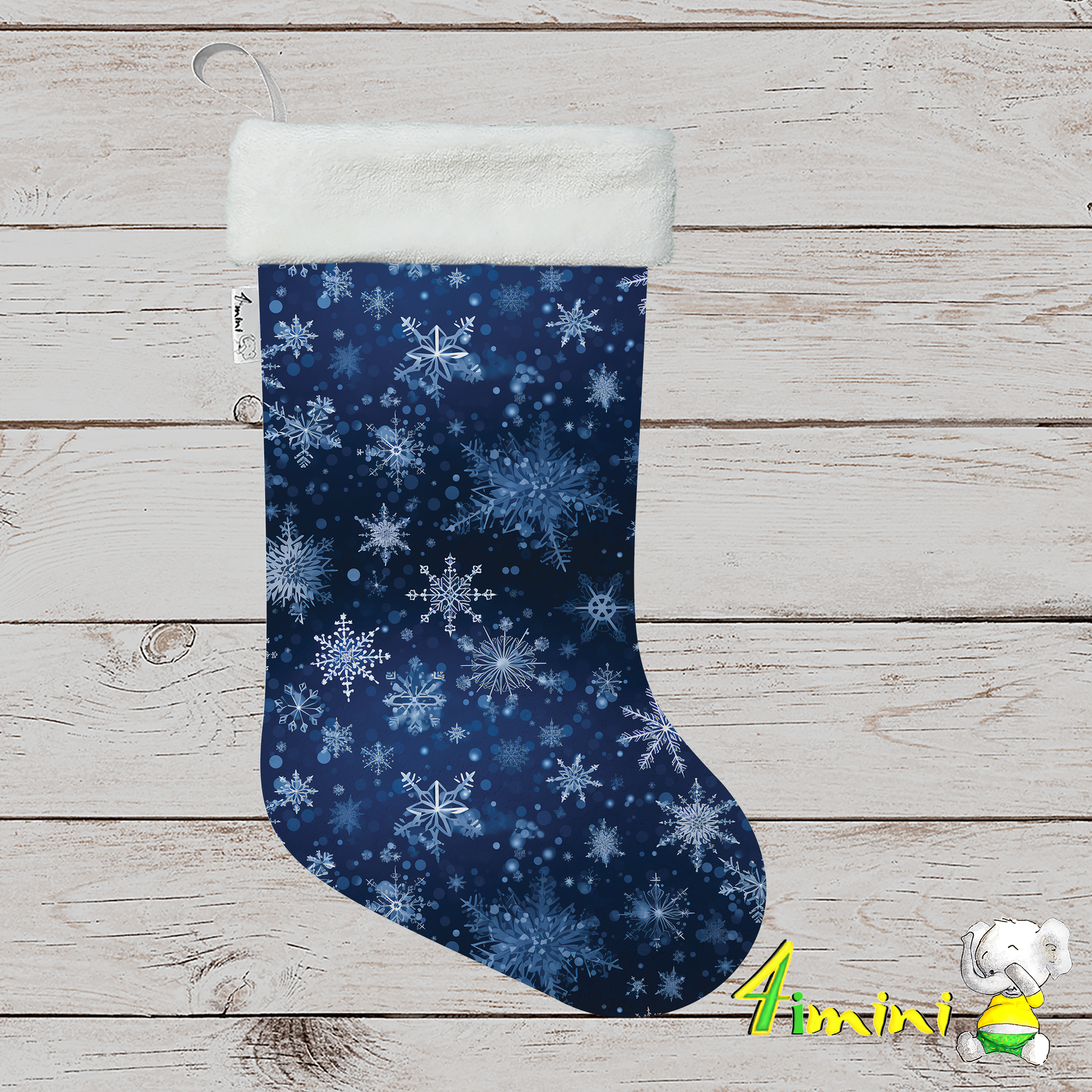 Bas de Noël - Flocon blanc sur fond bleu foncé