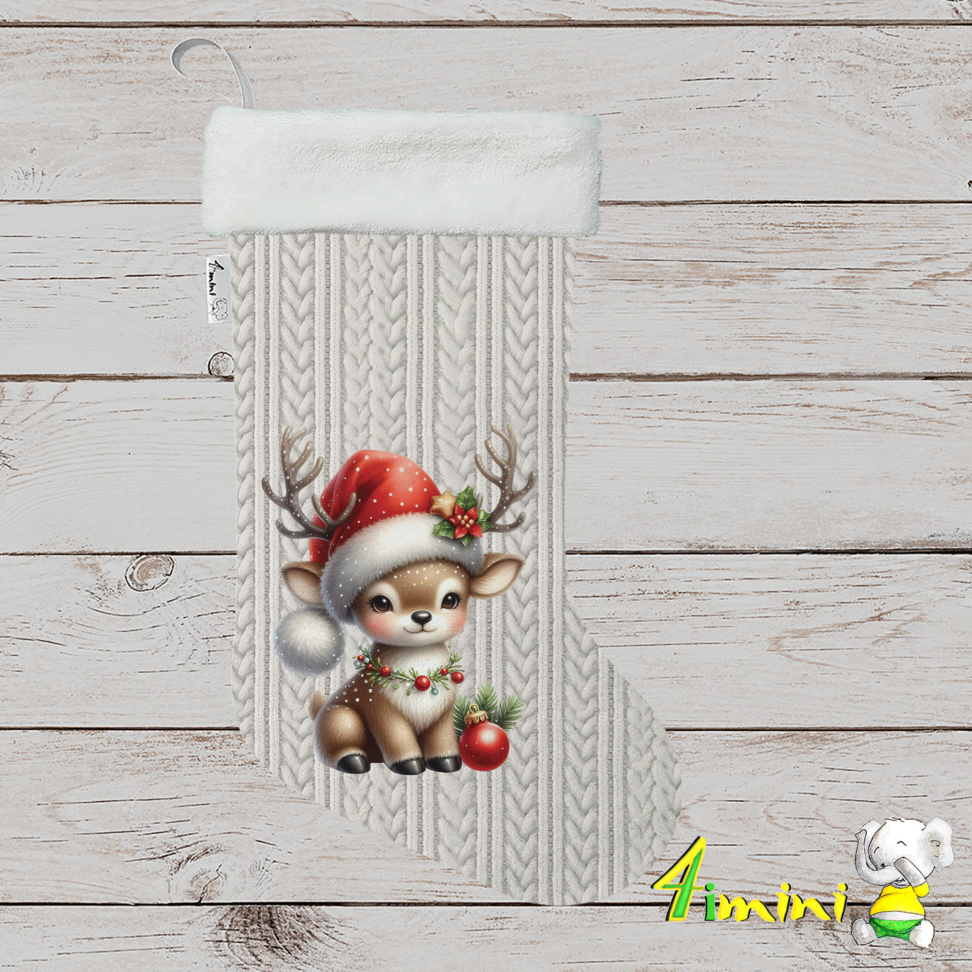Bas de Noël - Petit renne brodé crème
