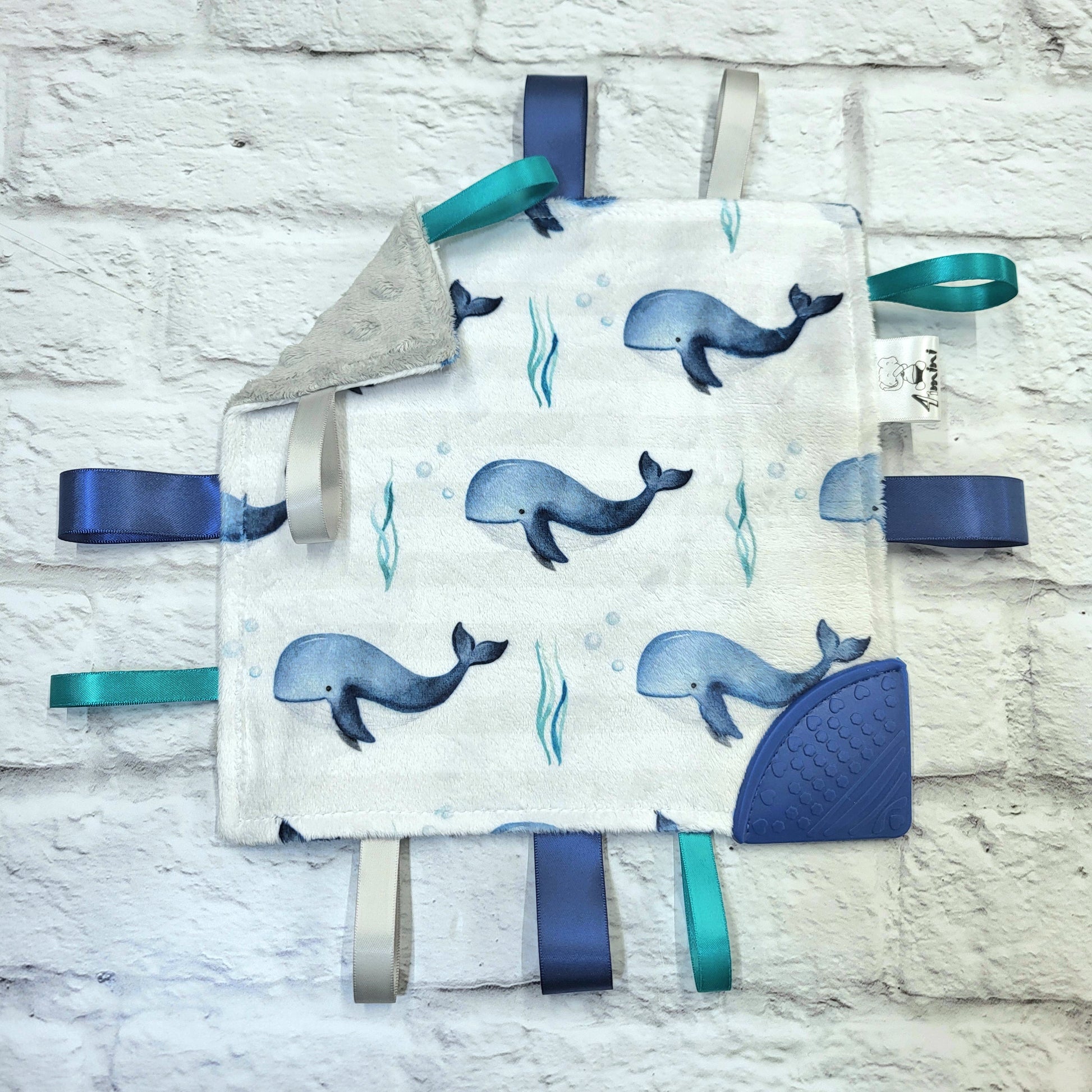Bulles et Baleineaux - Doudou étiquettes craquante avec coin de dentition
