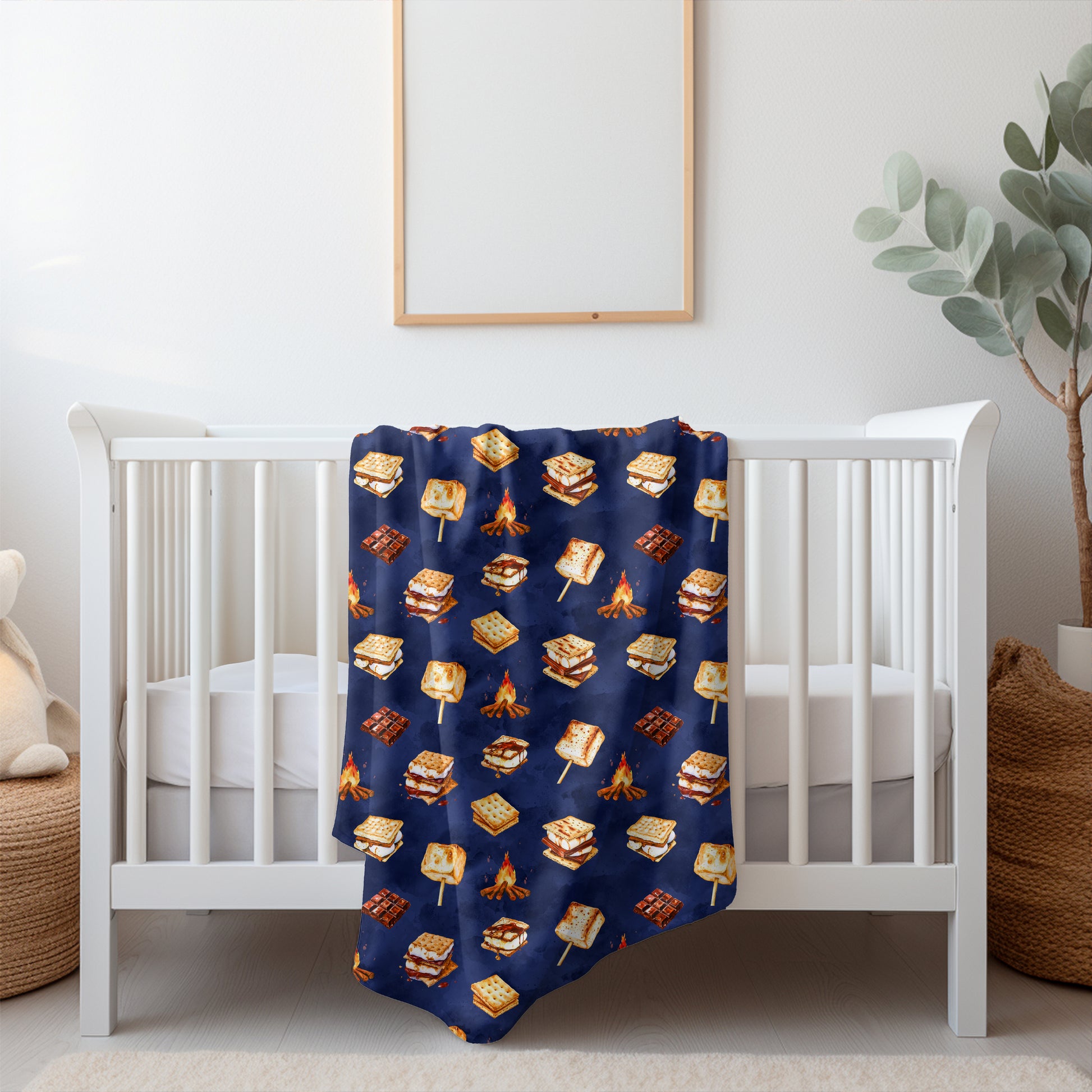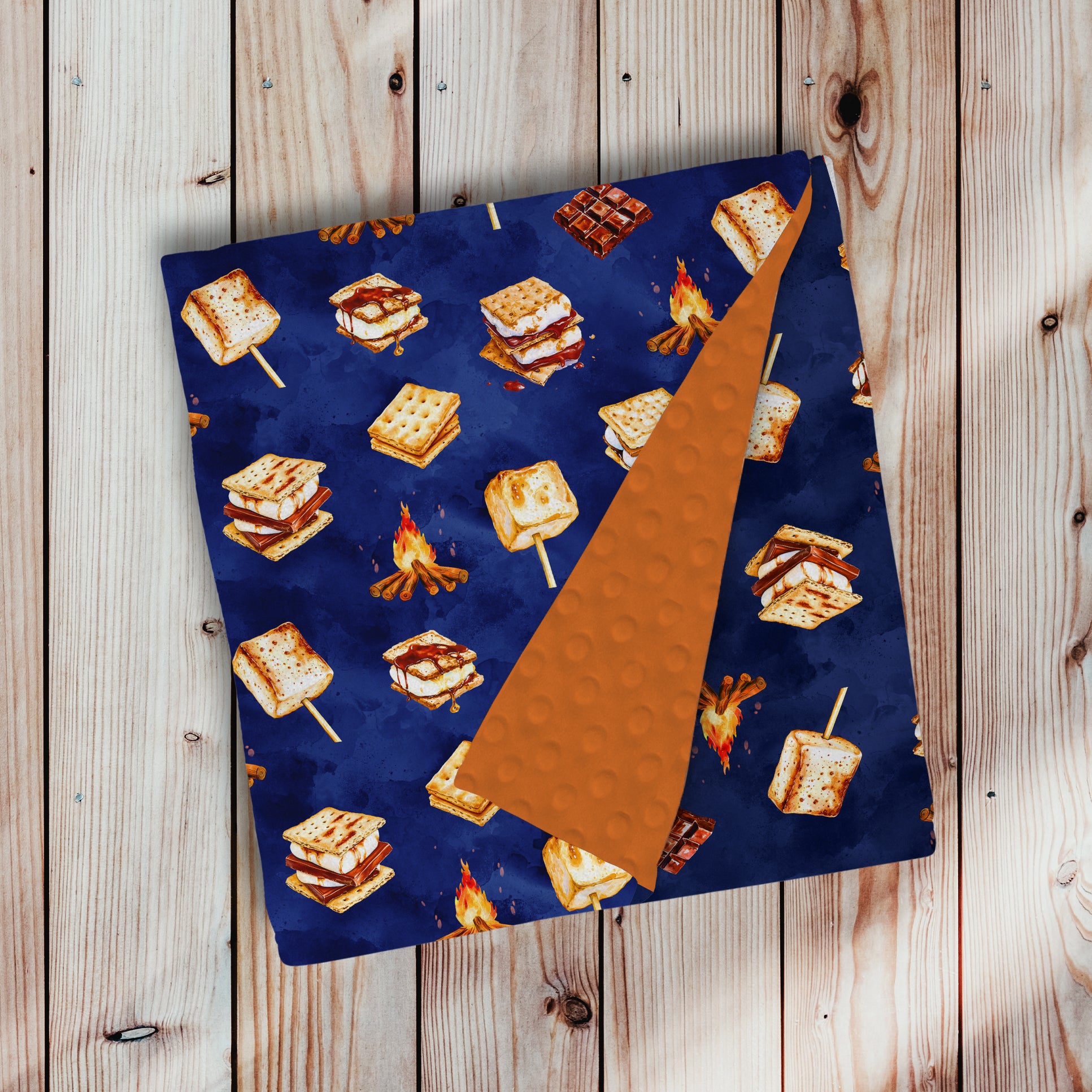 Fait de 2 épaisseurs, d'un côté un motif imprimé au Québec et au dos en minky à pois de couleur uni.