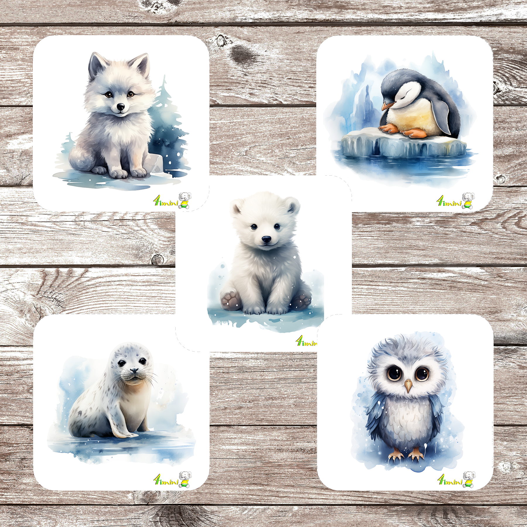 Ensemble de 5 débarbouillettes velours - Bébé animaux de l'arctique