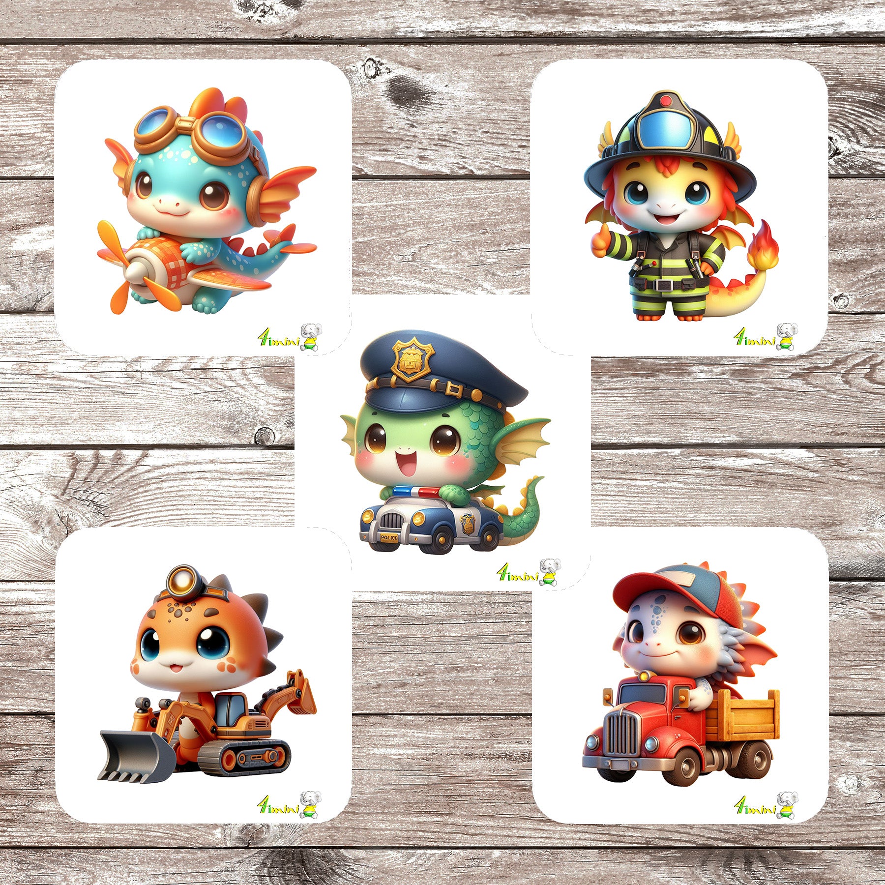 Ensemble de 5 débarbouillettes velours - Dragons au travail