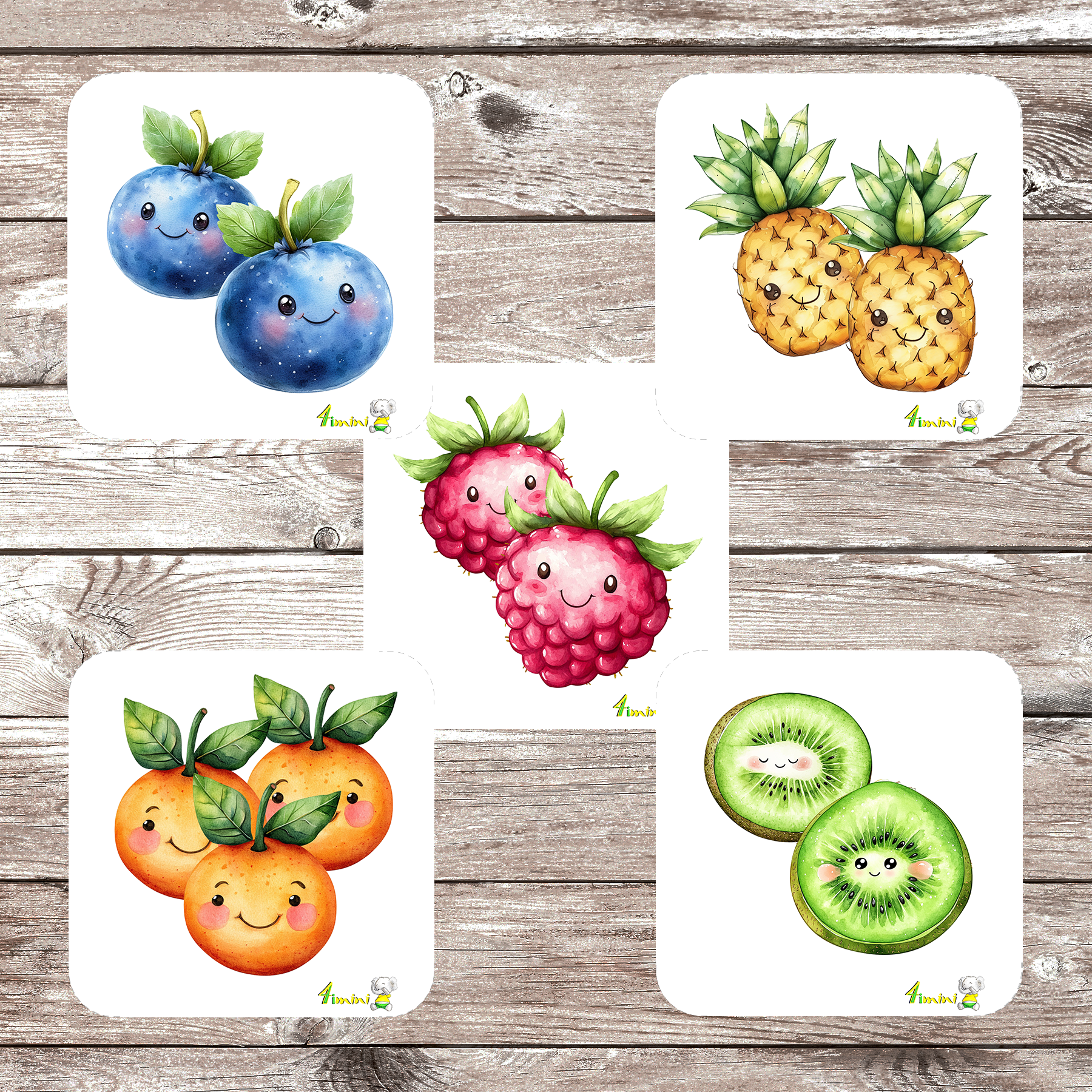 Ensemble de 5 débarbouillettes velours - Les fruits d'été