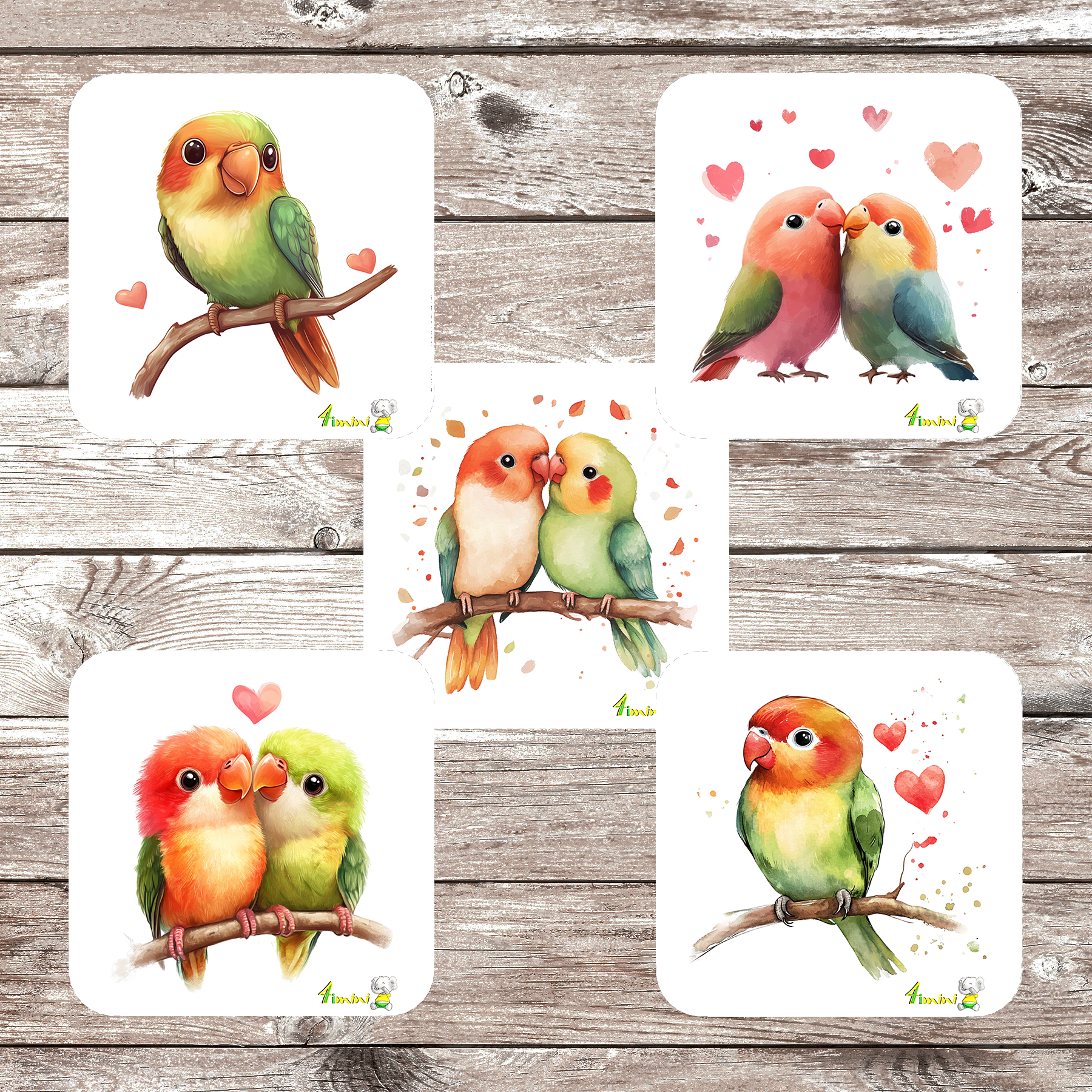 Ensemble de 5 débarbouillettes velours - Oiseaux de l'amour
