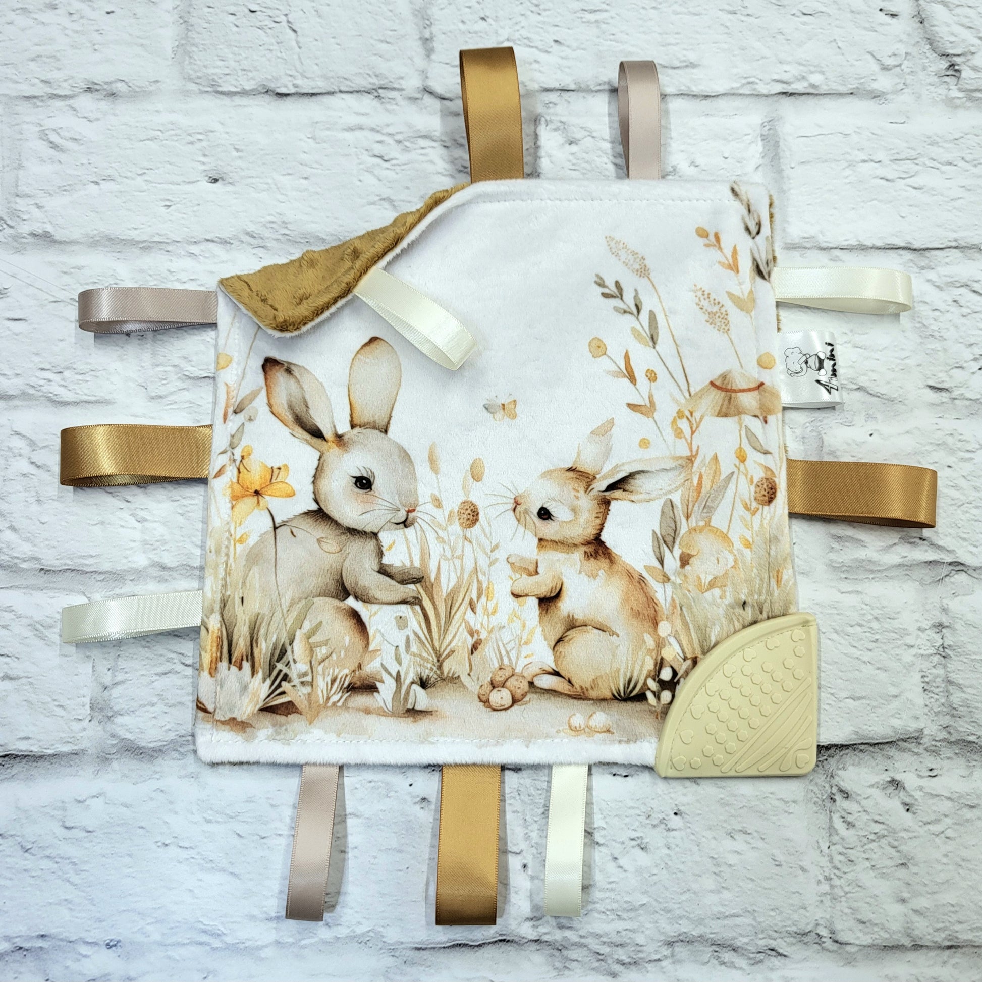 Printemps champêtre - Doudou étiquettes craquante avec coin de dentition