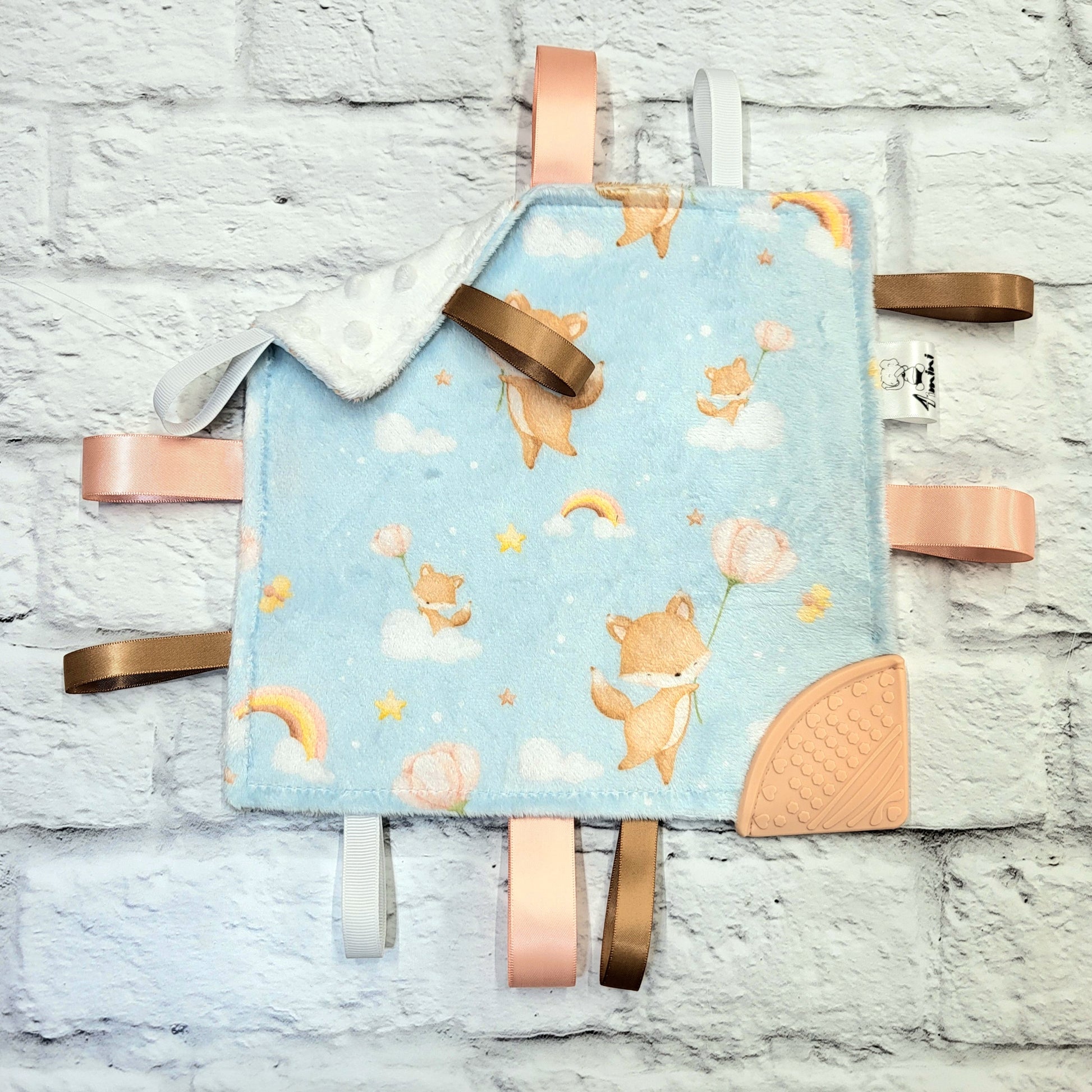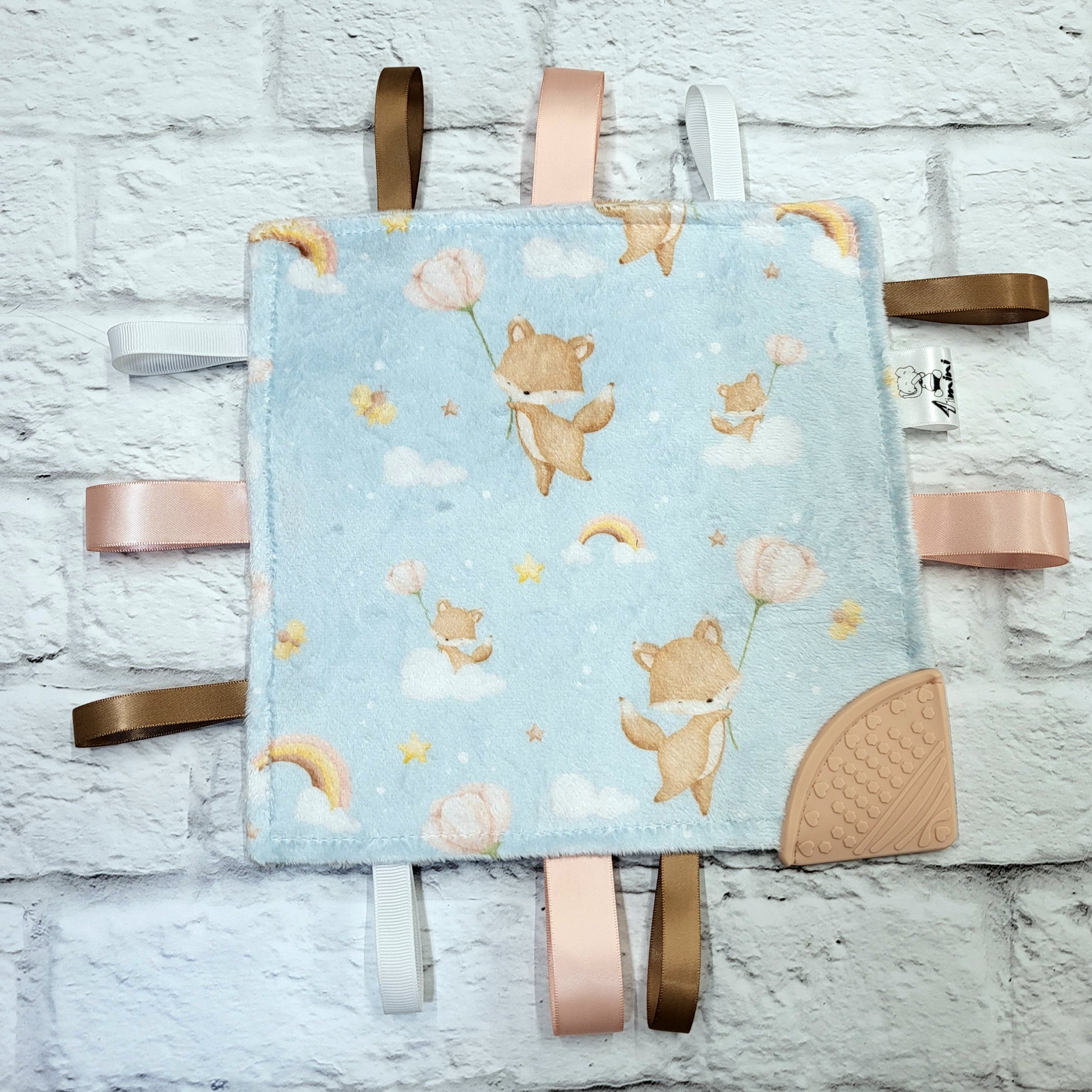 Renard Céleste - Doudou étiquettes craquante avec coin de dentition